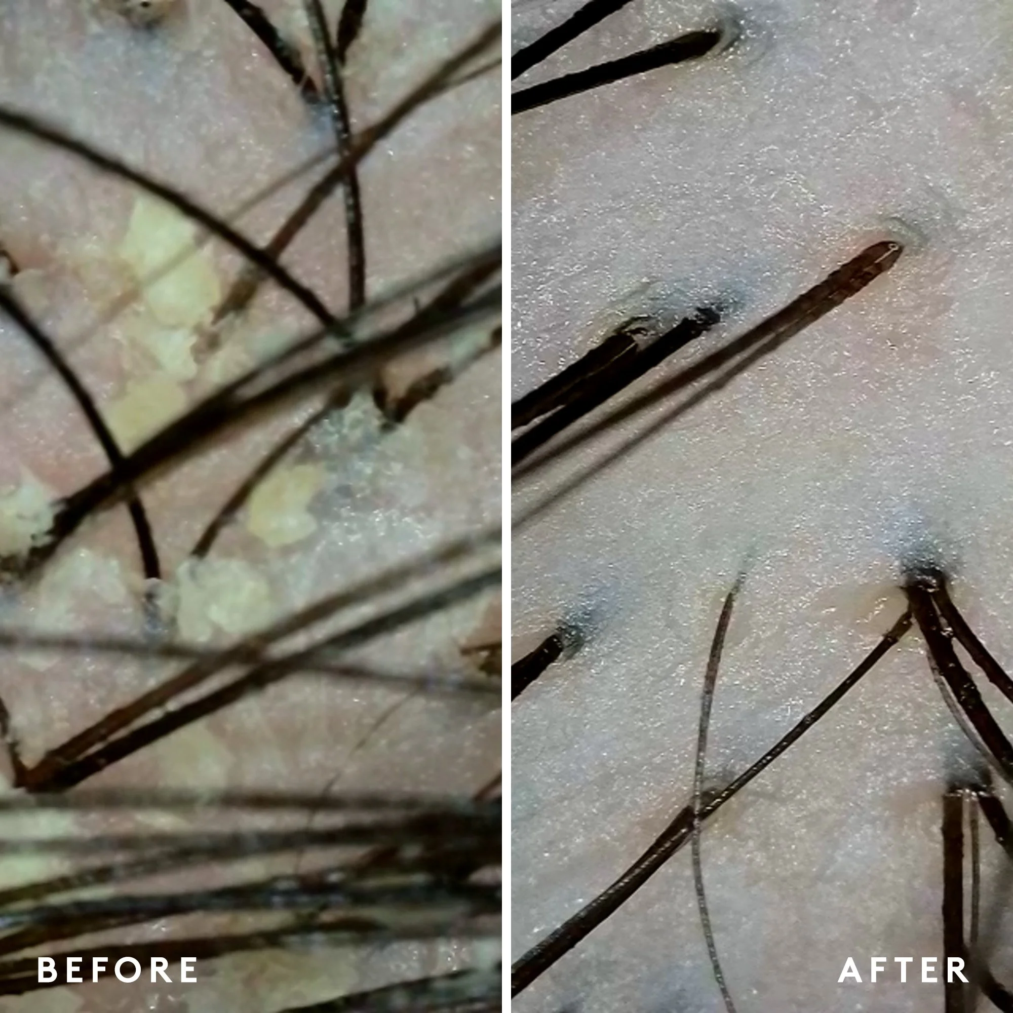 Start with VIRTUE Scalp Remedy Shampoo & Conditioner and use VIRTUE Scalp Dry Shampoo as needed