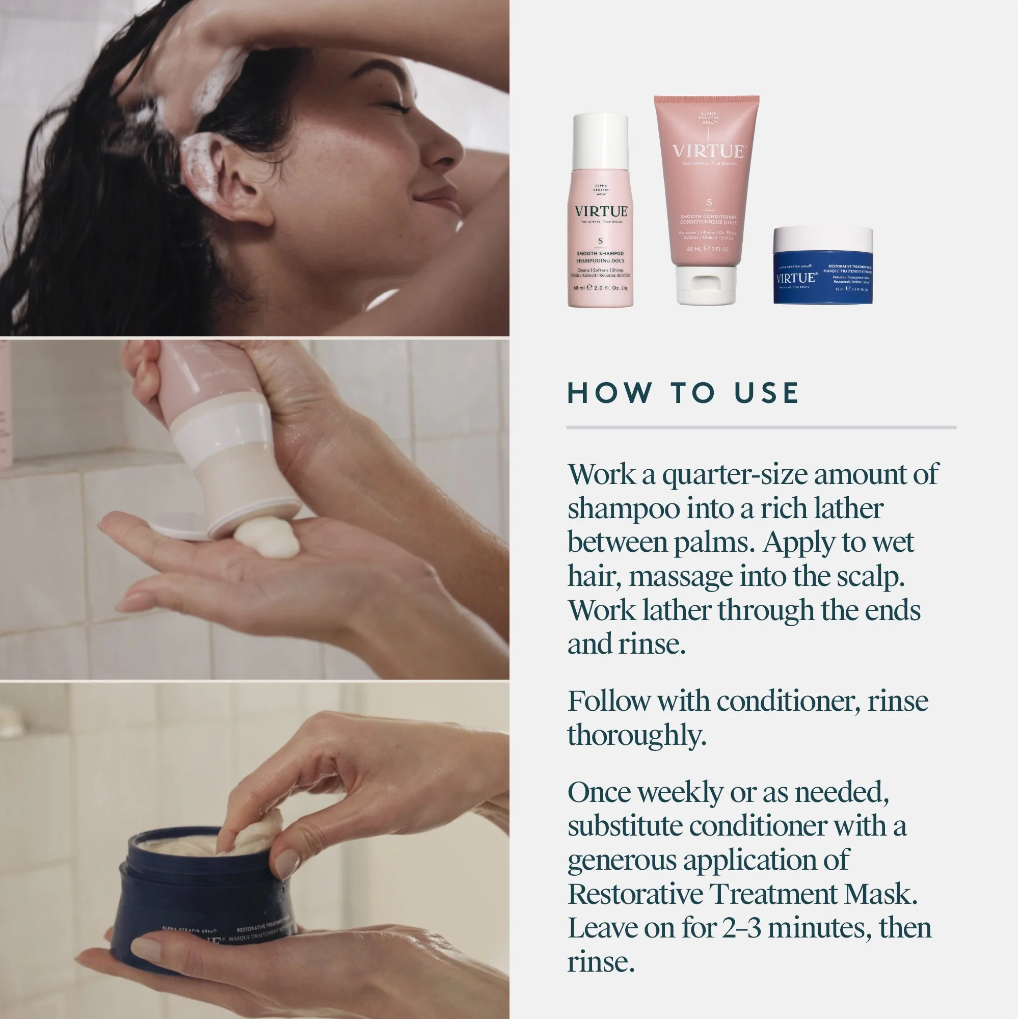 Smooth Categories: Select a Category DUOs Hair Type All Hair Fine & Flat Frizzy Curly Damaged Thinning Colour Treated Virtue Product Lines ColorKick Correct Curl Flourish Multi-Tasking Stylers Recovery Scalp Smooth Full Product Type Shampoo Styling Products Conditioner Treatments Kits Virtue Product Lines / Smooth Quick View Shampoo & Conditioner DUOs CA$184.00 Smooth Scalp Recovery Curl Full Add To Cart Added! Quick View Smooth Discovery Kit CA$52.00 Add To Cart Added! Quick View Smooth Frizz Block Smoothing Spray from CA$26.00 Select Size Travel 60ml Regular 150ml Add To Cart Added! Quick View Smooth Un-Frizz Cream from CA$30.00 Select Size Travel 60ml Regular 120ml Add To Cart Added! Quick View Smooth Conditioner CA$58.00 Add To Cart Added! Quick View Smooth Shampoo CA$54.00 Add To Cart Added!